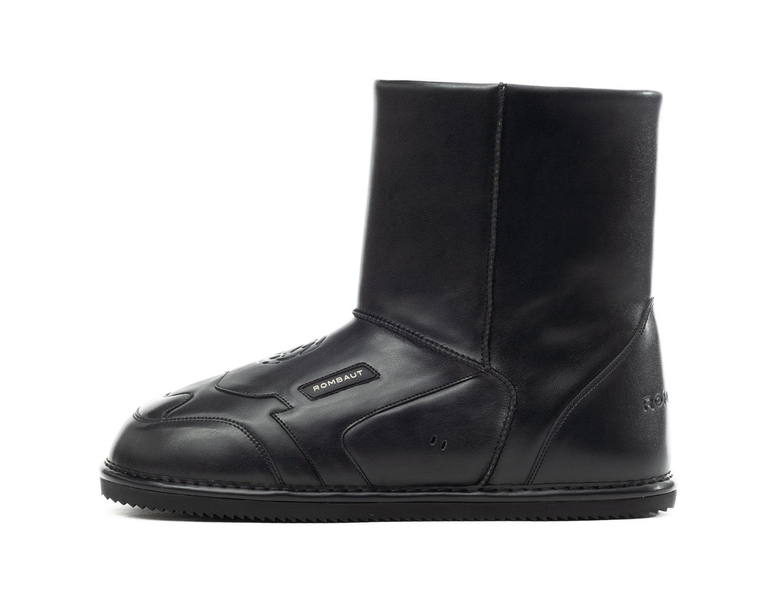 Pleather slip-on ankle boot with wool lining.