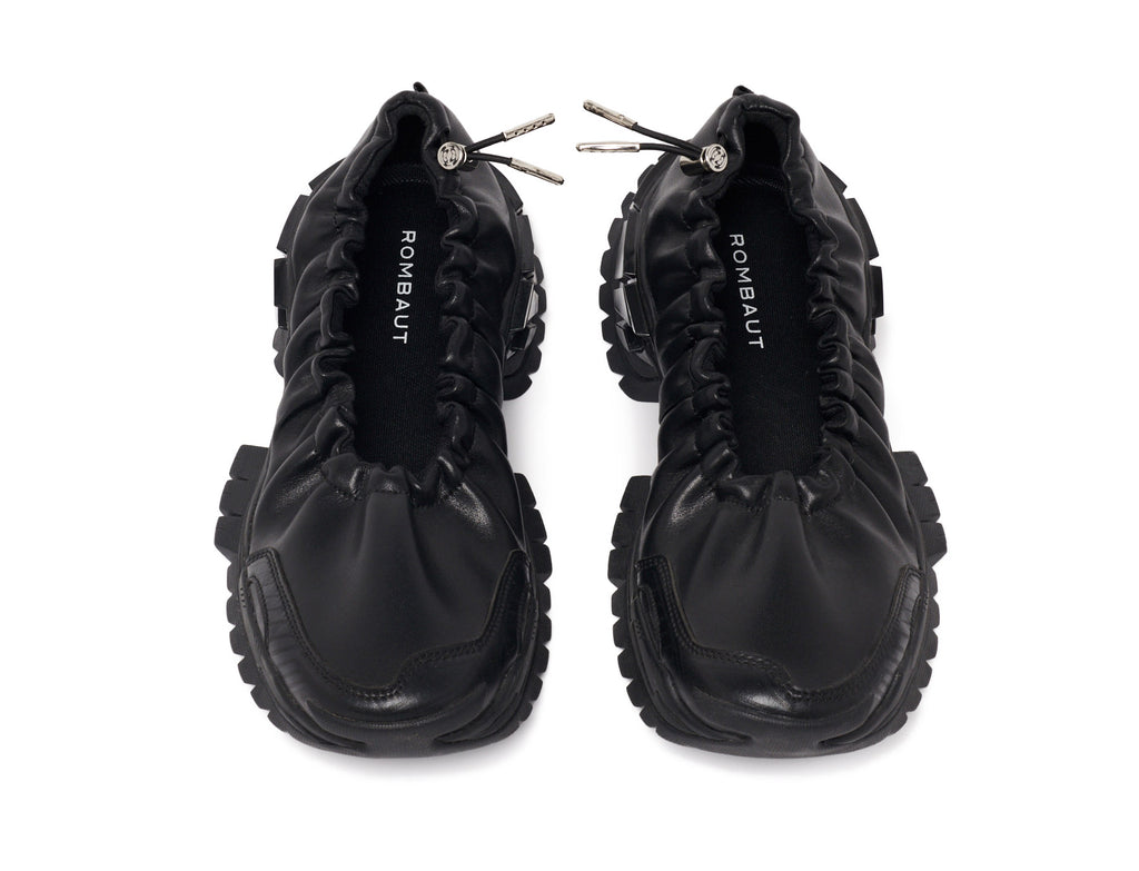 Round toe. Gathering at elasticised collar. Adjustable at heel collar.